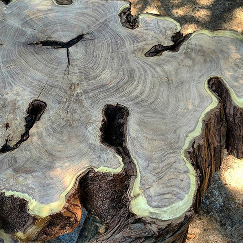 We've been commissioned to create a custom 34" diameter coffee table from this rare Mesquite End grain slab with a rare flowery-burl shape. The customer has requested us to secure the bark and finish in high gloss with matching Mesquite lathe-turned legs that we've partnered with Michael aka The Wood Chef to create for us.
