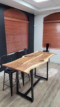 We created this live edge contemporary podcast desk for our client's office in Mesa using a bookmatch set of Rosewood slabs paired with a contemporary steel base. This was a rush job finished in 2 weeks.